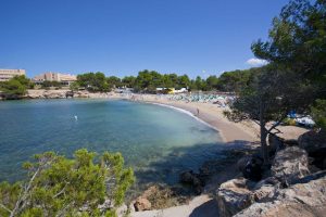 Continuamos navegando por esta costa urbana, en la que encontraremos diversas calas y puntos de desembarco. Pasaremos por Caló de s’Oli, bordaremos Punta Xinxó con su faro verde, indicador de entrada a la bahía, para llegar a su extensa playa dotada con todos los servicios.